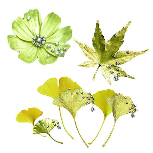 三木稔が生みだすNAZUNAのジュエリーは、自然界にある植物をそのまま金属に変化させたようなリアリティが魅力のひとつ。空間の中で貴金属の花びらや葉が本当に存在しているかのようにデザインされた作品には、日本的な繊細な美意識を感じることができます。