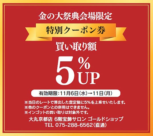 期間中、ご来場のうえ、買取ご成約いただいた方は買取額5%UPいたします。
