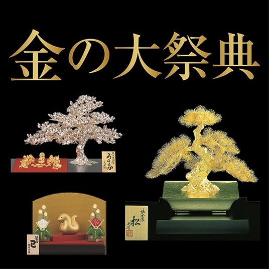 今回は場を華やかにする純金の盆栽をはじめとした花や木をモチーフとした置物、ジュエリーを特集します。人気の干支もの、縁起もの、節句ものはもちろん、小判やおりん・仏具も豊富に取り揃えてご紹介いたします。