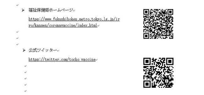ワクチン接種会場の最新情報等は、福祉保健局ホームページ及び公式ツイッター「東京都設置 ワクチン大規模接種会場」でご確認下さい。