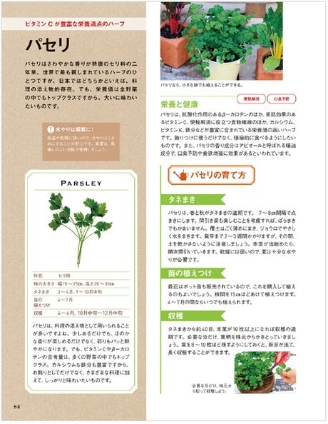 パセリやチャービル、スープセロリなど料理に使えるおいしいハーブも人気があります。
