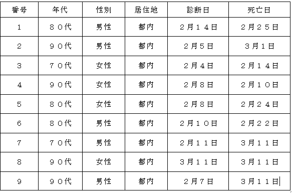 都内で新型コロナウイルスに感染した方が死亡されましたのでお知らせします。