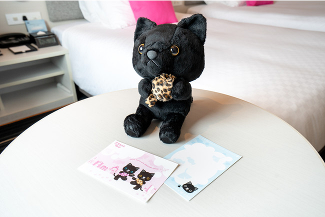 御堂筋のイチョウ並木に因み「ぎん(銀)ちゃん」、「あん(杏)ちゃん」と名付けられた双子の黒ねこは、ヒョウ柄をこよなく愛し、いつでもアメちゃんを持ち歩くという大阪のおばちゃんのイメージを取り入れました。コンセプトルームではなんとアメちゃんねこが超BIGになって登場するなど、愛らしさと大阪らしさをたっぷり感じる笑顔になれるお部屋となっており、写真映えも間違いなし。全国の『ねこ好き』『ぬいぐるみ好き』の方のファミリー旅や女子旅に向けて、ホテル日航大阪でしか体験できない時間をご用意いたします。