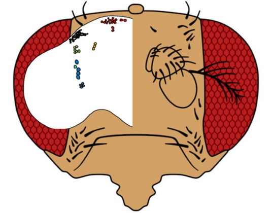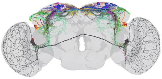 キイロショウジョウバエの脳と時計細胞の神経回路 (Image credit: Nils Reinhard)