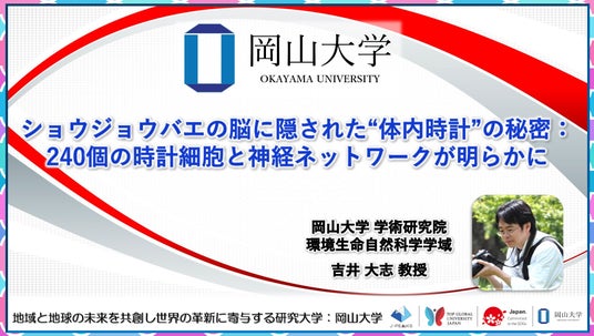 国立大学法人岡山大学(本部:岡山市北区、学長:那須保友)学術研究院環境生命自然科学学域(理)の吉井大志教授(時間生物学)、岡山大学大学院自然科学研究科の福田あゆみ大学院生らは、ドイツ・ヴュルツブルク大学とアメリカ・ネバダ大学リノ校との国際共同研究によって、キイロショウジョウバエの脳にある時計細胞(神経細胞)の全シナプス結合を明らかにしました。