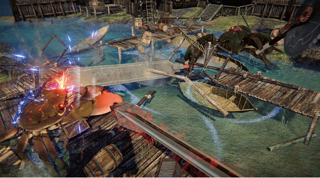 カニノケンカ、それはカニを操作しカニと闘う、最先端3Dアクションゲームです。 物理演算に基づきつつも、力強く鋭い動きのできるカニの体は、どんな真剣勝負にも耐える戦いの実験場。 左右のハサミを意のままに動かし、数多の武器を操り、貴方だけのカニ武芸を探求しましょう。