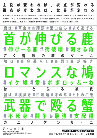 ゲームならではの世界観や、常識では考えられない価値観をもつ個性的な作品を、独自の切り口で紹介する本展は、今回のテーマを「いきもの」に設定し、渋谷PARCO B1F GALLERY X BY PARCOにて2024年2月16日(金)より初開催いたします。