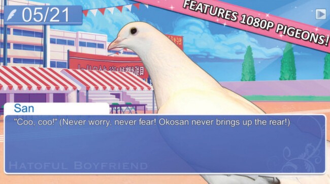 おめでとうございます!あなたは鳥類の名門校、聖ピジョネイション学園で学ぶことを許された唯一の人間です!世界一のハト高校の2年生として学園に通い、ステキな恋を見つけましょう。
