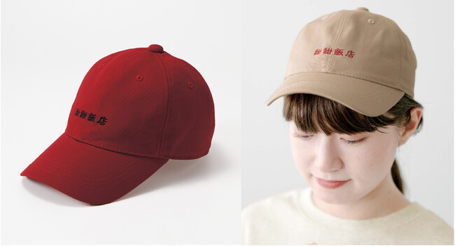 妄想の中華食堂名「甜甜飯店」がフロントに刺しゅうされた、まるでお店のスタッフのようなオリジナルキャップです。ピリリと効いた麻婆みたいなレッドとゴマだれのようなベージュの2色展開です。
