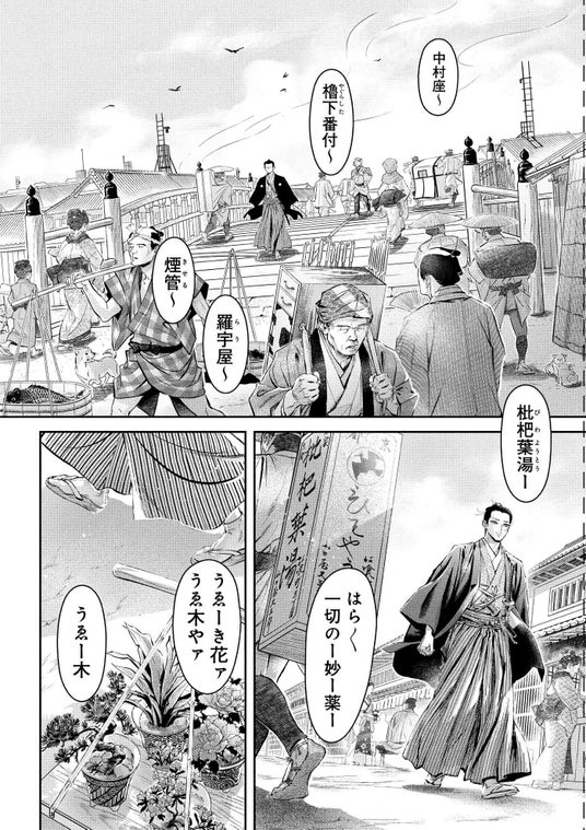 作者自身が連載を熱望していた作品でもあり、そのこだわりは細部にまで及びます。江戸市中の風景や武家屋敷の佇まい、掛け軸に至るまで徹底的に描き込まれ、刀剣や蒔絵、障子に差し込む光と影の表現など、圧倒的な描写力が随所に発揮されています。