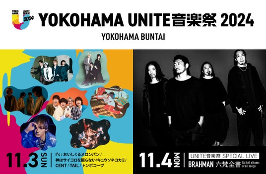 11月3日(日曜、文化の日)、4日(月曜、振替休日)の2日間に渡って、「この街は、音楽でひとつになる。」をテーマに、横浜BUNTAIとしては初となる音楽祭「YOKOHAMA UNITE音楽祭2024」を開催いたします。11月3日は、年内での解散が発表されたI’sと、おいしくるメロンパン、神はサイコロを振らない、キュウソネコカミ、CENT、TAIL、トンボコープの計7組のアーティストが出演。