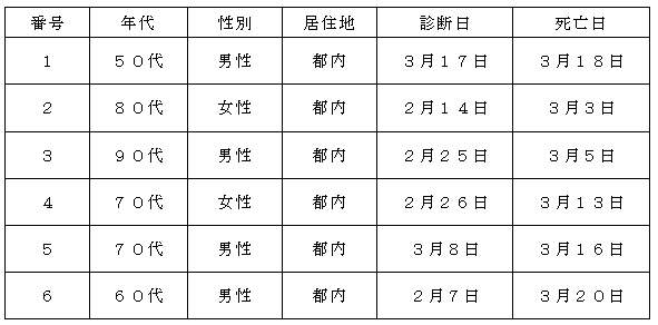 都内で新型コロナウイルスに感染した方が死亡されましたのでお知らせします。