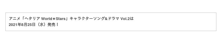 アニメ「ヘタリア World★Stars」キャラクターソング&ドラマ Vol.2 2021年8月25日(水)発売!