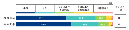 ■インターンシップ等のキャリア形成支援プログラム 参加件数全体におけるプログラム期間の割合 (大学生・就職意向者 まだ志望進路を決めていない含む/数値回答)