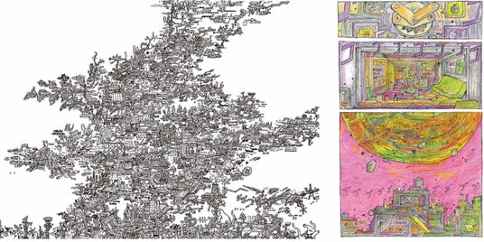 ペンで細密に描くアーティスト・篠崎理一郎の作品制作の過程を間近で見ることができます。