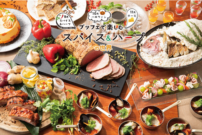 毎月趣向を凝らしたブッフェを堪能できる本フェアでは、第一弾として『ブッフェで楽しむスパイス&ハーブの世界』をご用意。世界最古のスパイスの1つとされる“コリアンダー”や爽やかな風味が特徴の“タイム”など30種類以上を使用した料理を召し上がりいただけ、「暦の上では秋、暑さが残る季節にスパイス・ハーブの料理で残暑を乗り切って欲しい」というシェフの思いが込められています。