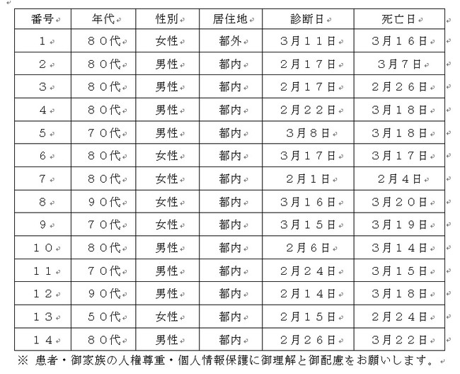 2022-03-24 東京都 新型コロナウイルスに関連した患者の死亡について Tweet ~新型コロナウイルスに関する東京都からのお知らせ~ 都内で新型コロナウイルスに感染した方が死亡されましたのでお知らせします。 お亡くなりになった方のご冥福をお祈り申し上げます。 企業プレスリリース詳細へ PR TIMESトップへ 公式ツイッター Follow @Straightpress 最新情報をTwitterで受け取ろう! 公式フェイスブックページ 最新情報をFacebookで受け取ろう! 前の記事 一覧へ戻る 次の記事