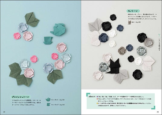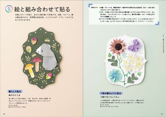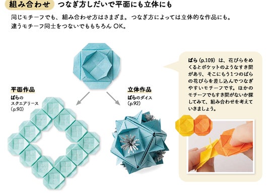 「折った作品を生かす」アイデアも満載。「ちょこっとクラフト」で、簡単にアートのような仕上がりにも。