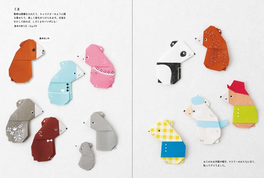たとえば、「くま」だけで何通りのバリエーションを作れるか試すのも楽しい。小物でキャラ化させる、大小で折って親子ぐまに、リバーシブルに折るとシロクマやパンダにも。