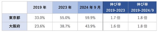 コロナ禍前から約1.8倍の伸び、2024年に入っても増加傾向 東京都は6割に迫る