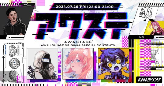 AWA株式会社(本社:東京都港区、代表取締役CEO:冨樫晃己)が運営する、サブスクリプション型(定額制)音楽ストリーミングサービス「AWA(アワ)」は、2024年7月26日(金) 22:00より、無料で誰でも参加できるオンライン空間「ラウンジ」で、ネットシーンを中心とした注目アーティストなどを毎回ゲストに招き、有識者であるMCとともにシーンの次のステージを切り開く番組「AWAステージ(通称:アワステ)」の第30回を開催いたします。