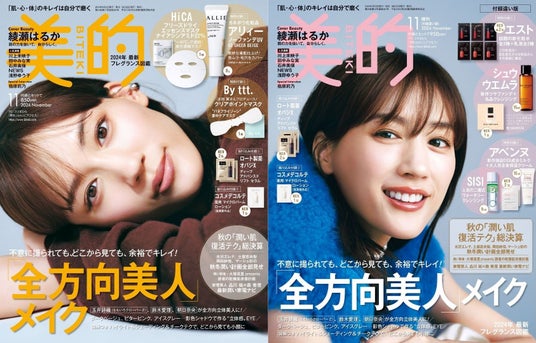 穏やかで自然体、そして唯一無二の清らかな美しさで多くの人を魅了し続ける綾瀬はるかさんが、『美的』表紙に登場! 11月号ということで、秋色&秋素材の衣装に身を包み、“ナチュラル美人” 際立つ「通常版」「付録違い版」2パターンの撮り下ろし写真をお届けします。