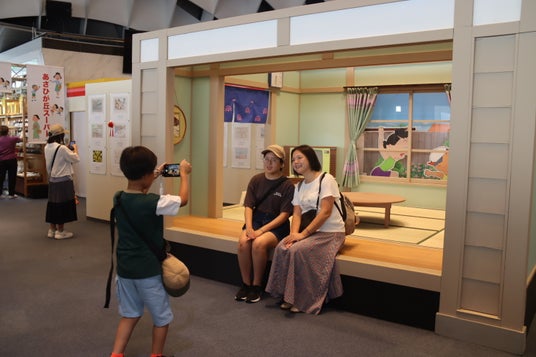 サザエさん一家のおなじみの茶の間や縁側を再現。