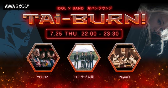 AWA株式会社(本社:東京都港区、代表取締役CEO:冨樫晃己)が運営する、サブスクリプション型(定額制)音楽ストリーミングサービス「AWA(アワ)」は、2024年7月25日(木) 22:00より、無料で誰でも参加できるオンライン空間「ラウンジ」で、ライブハウスを中心に活動するアイドルとバンドが共演する生配信番組『TAi-BURN!』の第9回を開催いたします。