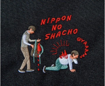 ニッポンの社長の名コント「立ち飲み屋」に登場する衝撃的なオチを再現したナップサック
