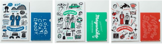 A4サイズとA5サイズの2枚セットがコンビごとに3か月連続で届くクリアファイル。A4サイズは雑誌や広告など幅広く活躍する人気イラストレーターユニットSTOMACHACHE.(ストマックエイク)さんがそれぞれのネタやギャグを書き下ろしたイラスト入り。昨年もコラボレーションしたロングコートダディには新柄が登場します。A5サイズは各コンビのロゴ入りで、お笑いライブのチケットや公演スケジュールの保管に重宝します。