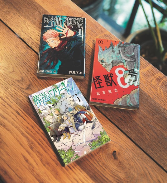 (写真上)『呪術廻戦』(C)芥見下々/集英社 、(同右)『怪獣8号』(C)松本直也/集英社 、(同下)『葬送のフリーレン』(C)山田鐘人・アベツカサ/小学館