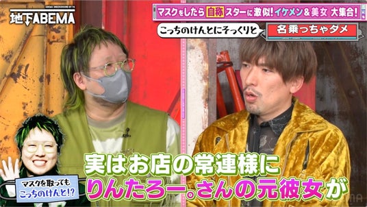 続いて、こっちのけんとに激似と名乗るエステティシャンの小畑淳矢さんが登場。元々似ていた体型と目の形に加え、髪を緑色に染め、15万円かけて本物と同じ衣装やメガネを揃える徹底ぶりに、スタジオからは「本人だよ!」と驚きの声が上がります。そんな中、トークの中で小畑さんのお店の常連客の中にEXIT・りんたろー。の元カノがいることが発覚。売れる直前の下積み時代を支えていたという彼女は「(りんたろー。は)一緒に寝ないとスネちゃう人」などと、赤裸々なエピソードを小畑さんに披露しているそうで、この唐突な暴露にりんたろー。は動揺。さらに兼近も「りんたろー。さんが『肉食わしてやるよ!』とか言って、2万ぐらい持って俺をご馳走してくれるときとか、だいたいその彼女からお金をもらってました」と当時の“ヒモ状態”を明かし、スタジオを驚かせました。