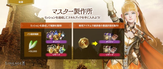 ワールドごとに異なる等級の「継承者の書選択箱」や「クラス/アガシオン獲得券(11回)(イベント)」を製作できるマスター コイン(イベント)を獲得できるシーズンパスを開催します。