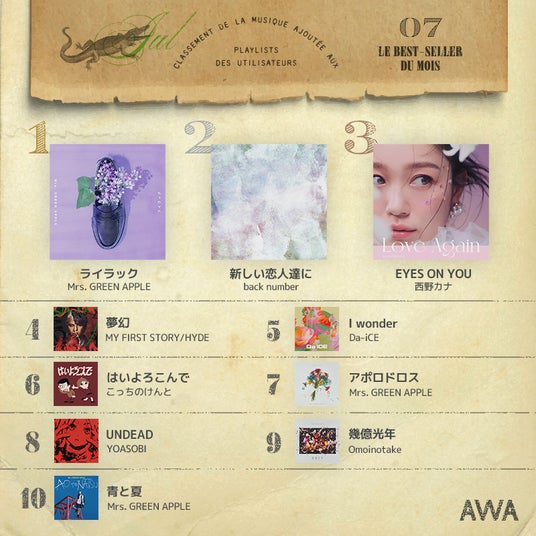 AWA株式会社(本社:東京都港区、代表取締役CEO:冨樫晃己)が運営する、サブスクリプション型(定額制)音楽ストリーミングサービス「AWA(アワ)」は、2024年7月1日(月)から7月31日(水)までに、ユーザーが作成したプレイリストへ採用された楽曲を集計し、7月度の『プレイリスト採用楽曲ランキング』を発表いたしました。