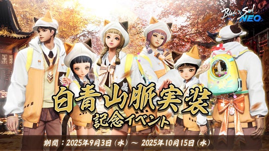 エヌ・シー・ジャパン株式会社(本社:東京都港区、代表取締役:林 元基(イム ウォンキ)、以下エヌシージャパン)は、PCオンラインゲーム『ブレイドアンドソウル』のリメイク作品となる『ブレイドアンドソウルNEO』にて、9月3日(水)に最新大型アップデート「白青山脈」を実施したことをお知らせします。