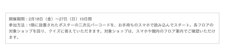※開催期間・開催場所などは変更になる場合がございます。詳しくは、店舗のHPをご覧ください