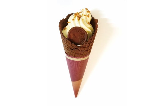 <ナオミ ミズノ>のソフトクリームはカラメルフレークの食感とカカオパルプの爽やかなフルーティー感を楽しめます。