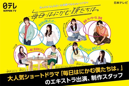 ・日テレ公式『毎日はにかむ僕たちは。』について:「はにかんでしまうような一瞬」をコンセプトとしたショートドラマシリーズ(通称“まいはに”)。さまざまなキャラクターを個性豊かな俳優が演じ分け「胸がキュンとする明るい恋」や「たわいもないけど思い出に残る日常」など、あったかもしれない物語を体験できる。SNS総再生回数は15億回を超え、TikTok平均再生回数は400万回。
