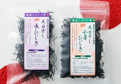 「長ひじき」は茎の部分で、やわらかい食感が特徴。「小芽ひじき」は葉の部分で、歯ごたえがある食感です。