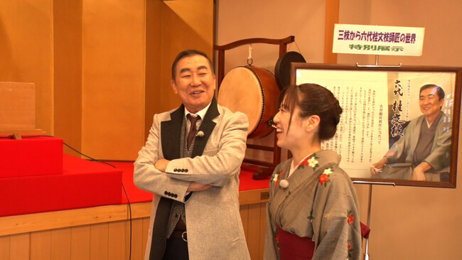 さらにその後は、自身が名誉館長を務める池田市立の落語資料館、落語みゅーじあむも訪れました。この落語みゅーじあむの館内には舞台があり、八織は昨年、ここで寄席を行ったと話します。