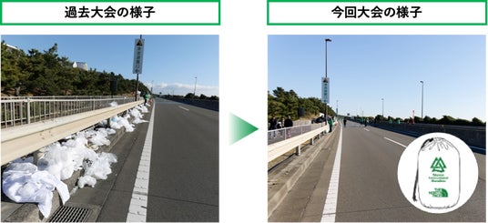 今年は新たな取り組み「クリーンスタートプラン」を実施したことも功を奏しています。参加ランナー、運営ボランティアの意識向上はもちろんのこと、会場内でもゴミゼロに向けてさまざまな取り組みを拡充しており、応援者、来場者すべての皆様の環境配慮意識向上により、ゴミを出さないマラソン大会にむけて前進を続けています。