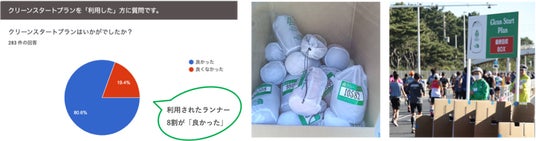 この取り組みを利用したランナーの約8割が「良かった」と回答。「今まで着用できなかった薄手のダウンで快適に待機出来た」や「脱ぎ捨てる罪悪感がなくなった。」とのコメントをいただきました。