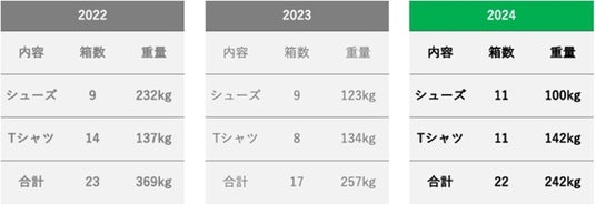 今大会でのゴミ排出量の結果と、リサイクル・リユースできるTシャツ・シューズの回収量やランナーのアンケート結果を一部公開いたします。