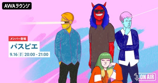 AWA株式会社(本社:東京都港区、代表取締役CEO:冨樫晃己)が運営する、サブスクリプション型(定額制)音楽ストリーミングサービス「AWA(アワ)」は、2024年9月16日(月) 20:00~21:00にて、無料で誰でも参加できるオンライン空間「ラウンジ」で、4人組ロックバンド「パスピエ」が音声とチャットで参加するAWAラウンジを開催いたします。
