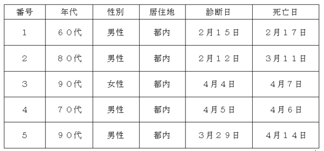 都内で新型コロナウイルスに感染した方が死亡されましたのでお知らせします。