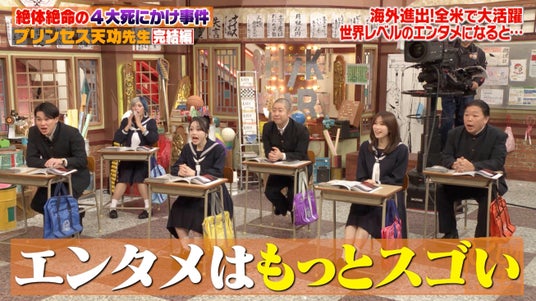 番組終盤では、何度も死にかけた先生が将来のために「18歳で卵子凍結」「将来海外セレブとの子どもを出産するかも?」と告白。日本人の母と、アメリカ人の母がいるという先生は、アメリカの母から「ずっと仕事をしていたら、自分のことが何もできなくなるから、18歳で卵子凍結しておきなさい」と言われたことがきっかけだったといい、「いろんな方が手を挙げてくれた。『ぜひ私の子どもを』と言われている」「5年後くらいに双子か三つ子が生まれたらいいな」と未来の構想を語りました。そこで「セレブは誰?」と質問が飛ぶと、先生からまさかの回答が…。生徒役で出演したタレント・伊集院光が思わず「スケールが違いすぎて、どこからどこまでがオンエアされるか分からない」と困惑する場面もありました。