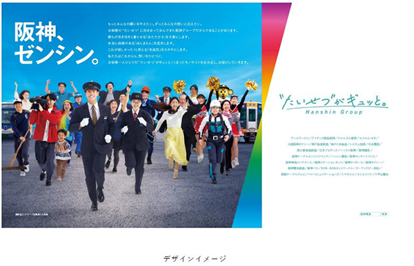 多様な事業を営む阪神グループの従業員が、お客様の“たいせつ”とともに、一体となって前へと進んでいく、そして「あたたかさ・ほんまもん・先進性」を実体化し、「阪神ブランド」としてこれからもお客様にお届けしていく、という私たちの決意をビジュアルとコピーに込めて制作しました(今回のポスターには、阪神グループの従業員とともに、お客様にもご登場いただいております。)。