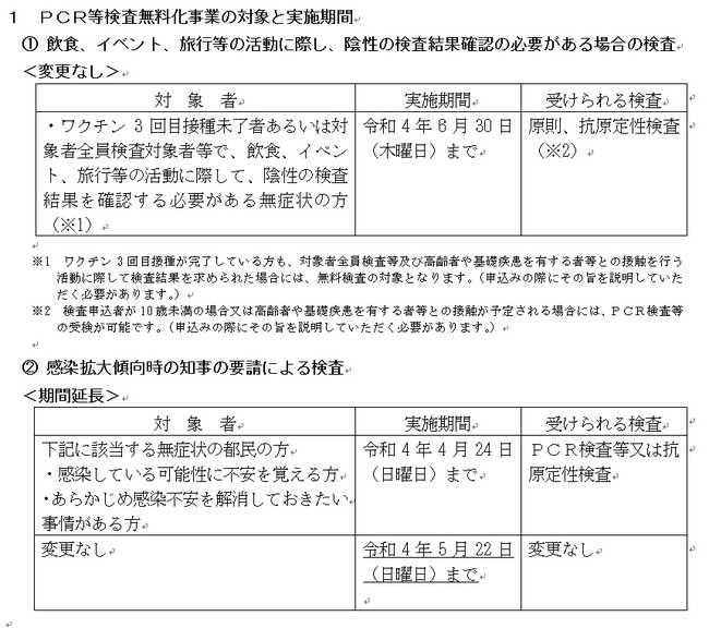 本日決定された東京都リバウンド警戒期間における取組延長に伴い、知事からの要請に基づく検査事業の期間を延長します。また、検査体制の強化のため、検査実施事業者の募集もあわせて行います。