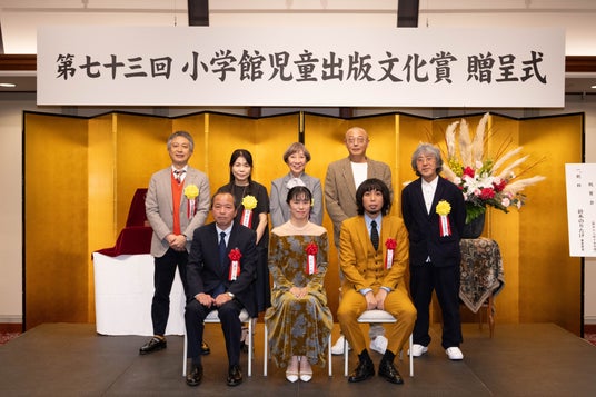 「小学館児童出版文化賞」(主催/小学館、日本児童教育振興財団)は、毎年度、児童出版文化の向上に貢献すると認められる幼年ならびに少年少女に奨めたい優れた作品および作家を選定し顕彰しています。この度、2024年度の受賞作が2作品に決定し、11月14日(木) 都内にて贈呈式が行われ、正賞としてブロンズ像「わかば」(笹戸千津子作)、副賞として賞金100万円が授与されました。
