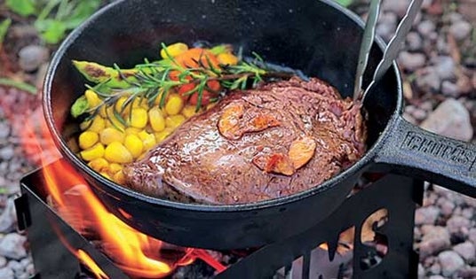 もちろん調理もOK。ひとり用のスキレットをのせておかずを作るも良し、晩酌のつまみをゆったり作るのも最高です!